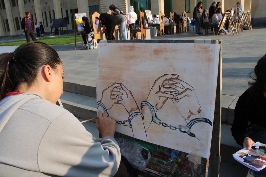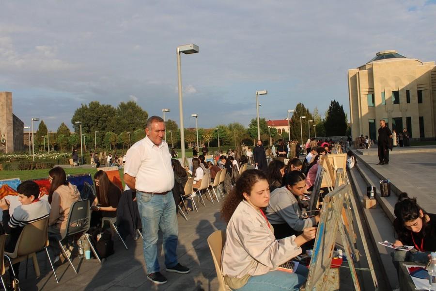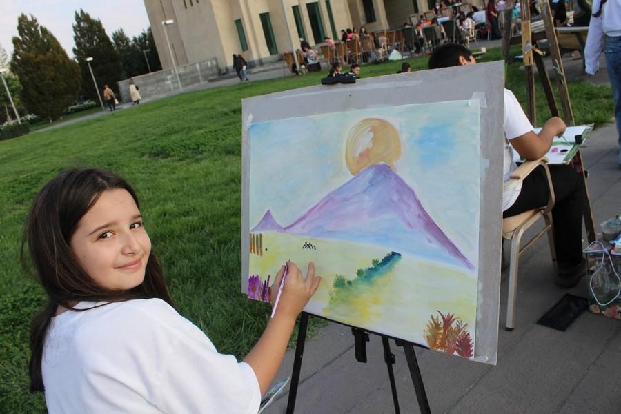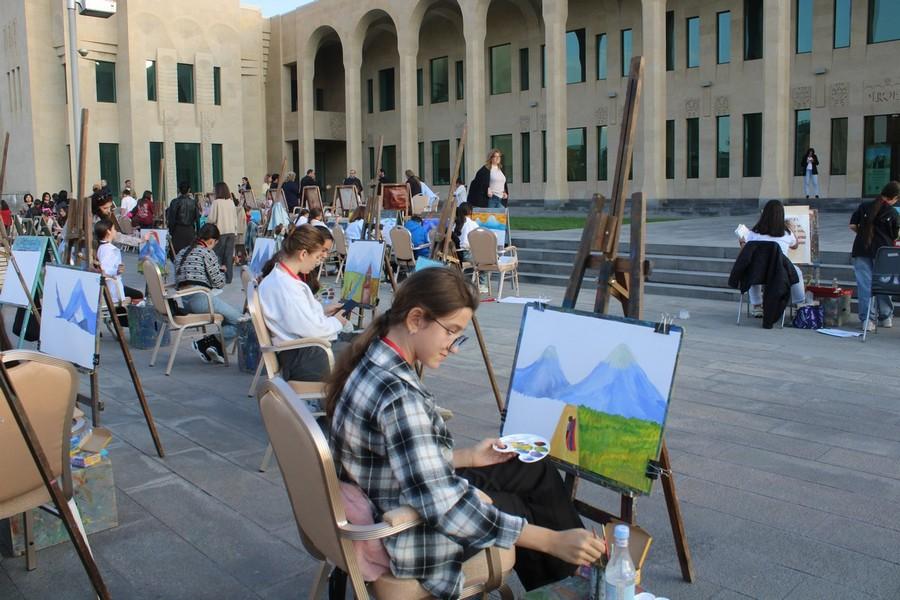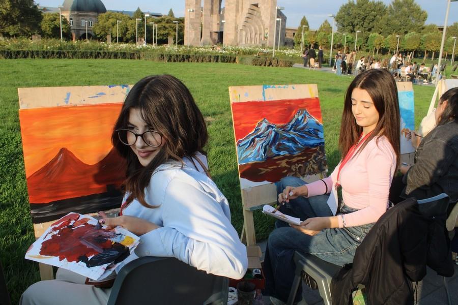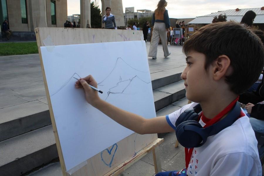 Հոկտեմբերի 2-ին այս Մատենադարանի հարակից տարածքում մարդաշատ էր․ շատ էին հատկապես երեխաները, ովքեր նկարում էին Հայոց սրբազան լեռը՝ Արարատը։