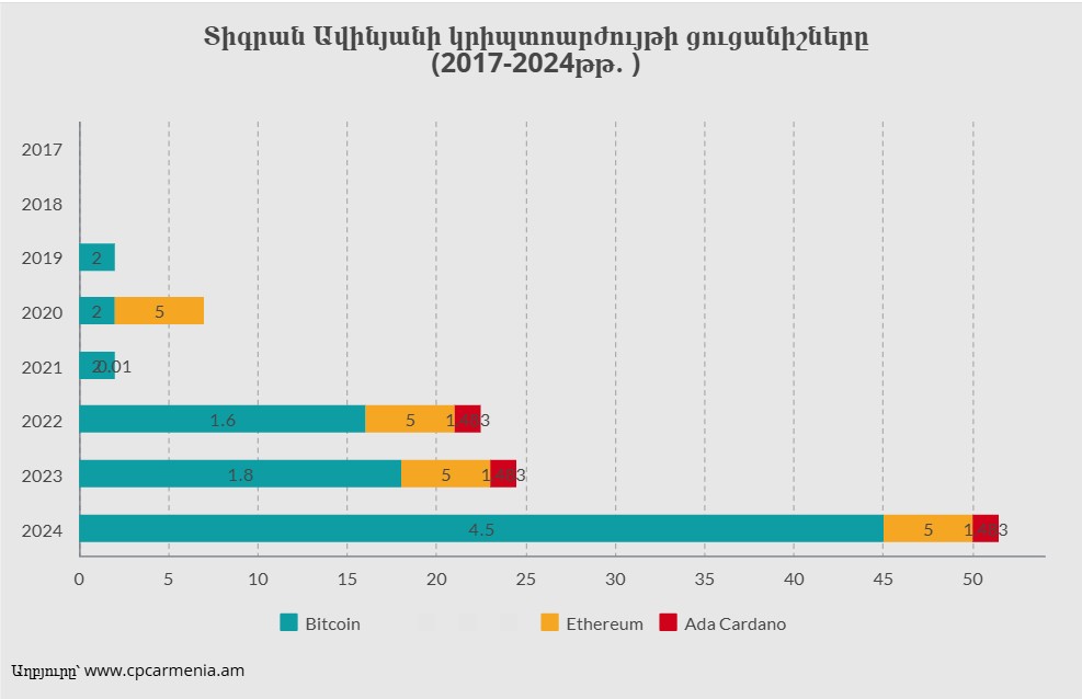 Հիմք ընդունելով վերոնշյալը՝ Տիգրան Ավինյանի կրիպտոակտիվների ընդհանուր արժեքը կազմում է ավելի քան $584,000 ԱՄՆ դոլար, մասնավորապես.
